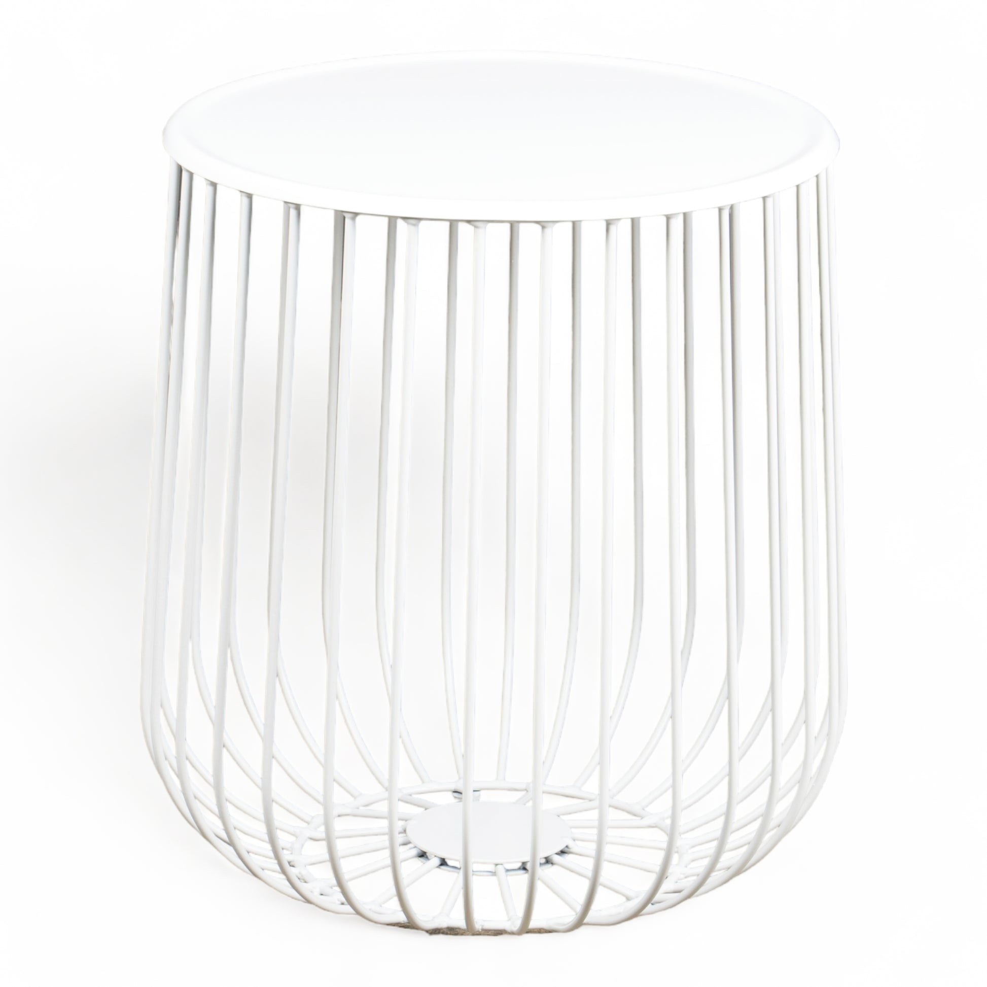 Stylish and modern, this round metal table is perfect for any space with its light, open bar design. Available in black, white, or gold.