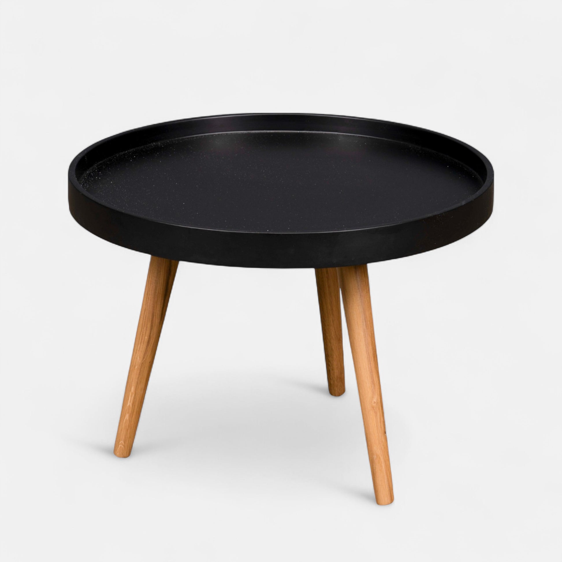 Matte black or matte white side table with light wood legs. Matches with the Asko Coffee table to create a nested set. Easy to assemble.