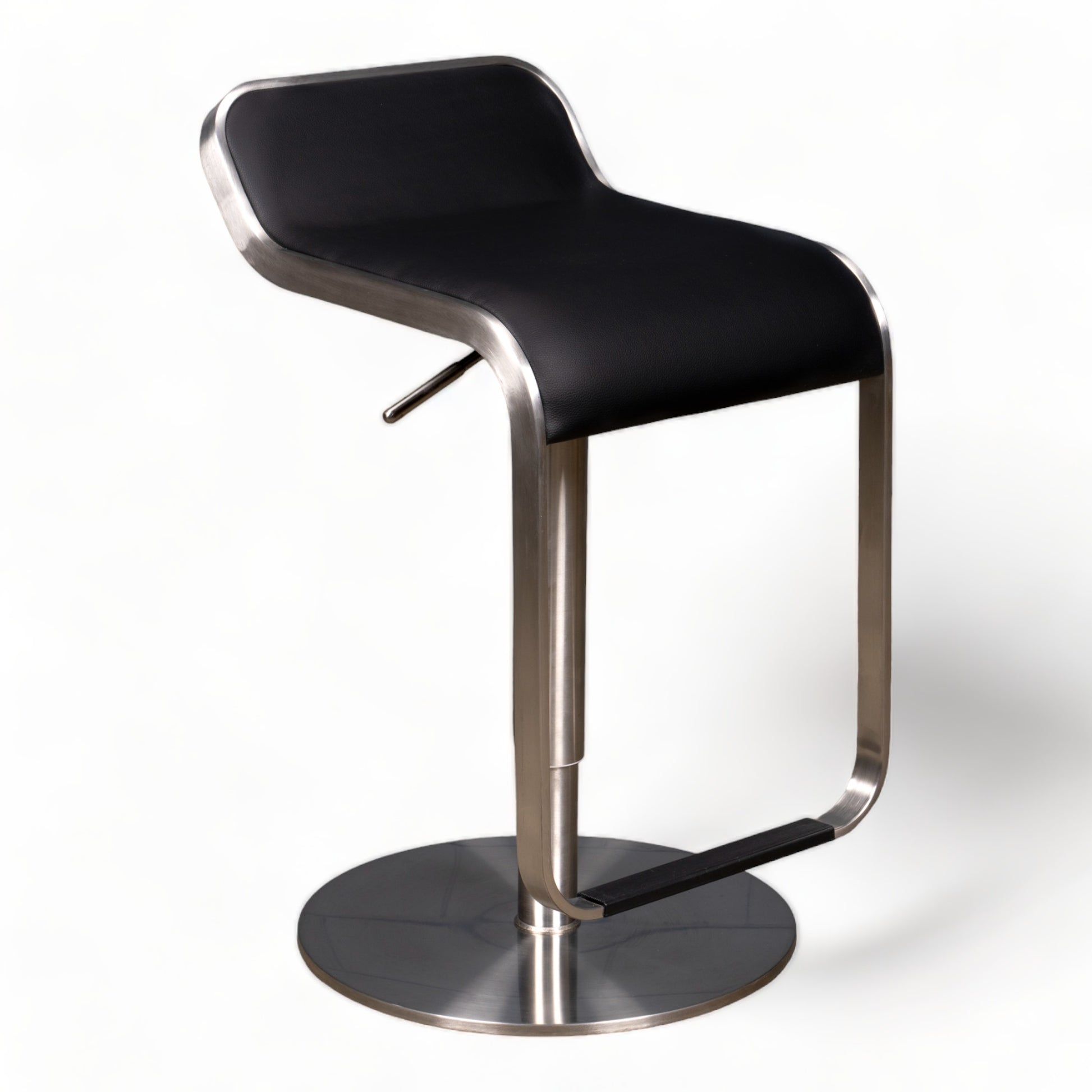 A sturdy PU upholstered barstool with a heavy duty gas mechanism on a brushed stainless steel base. Available in Black or White.