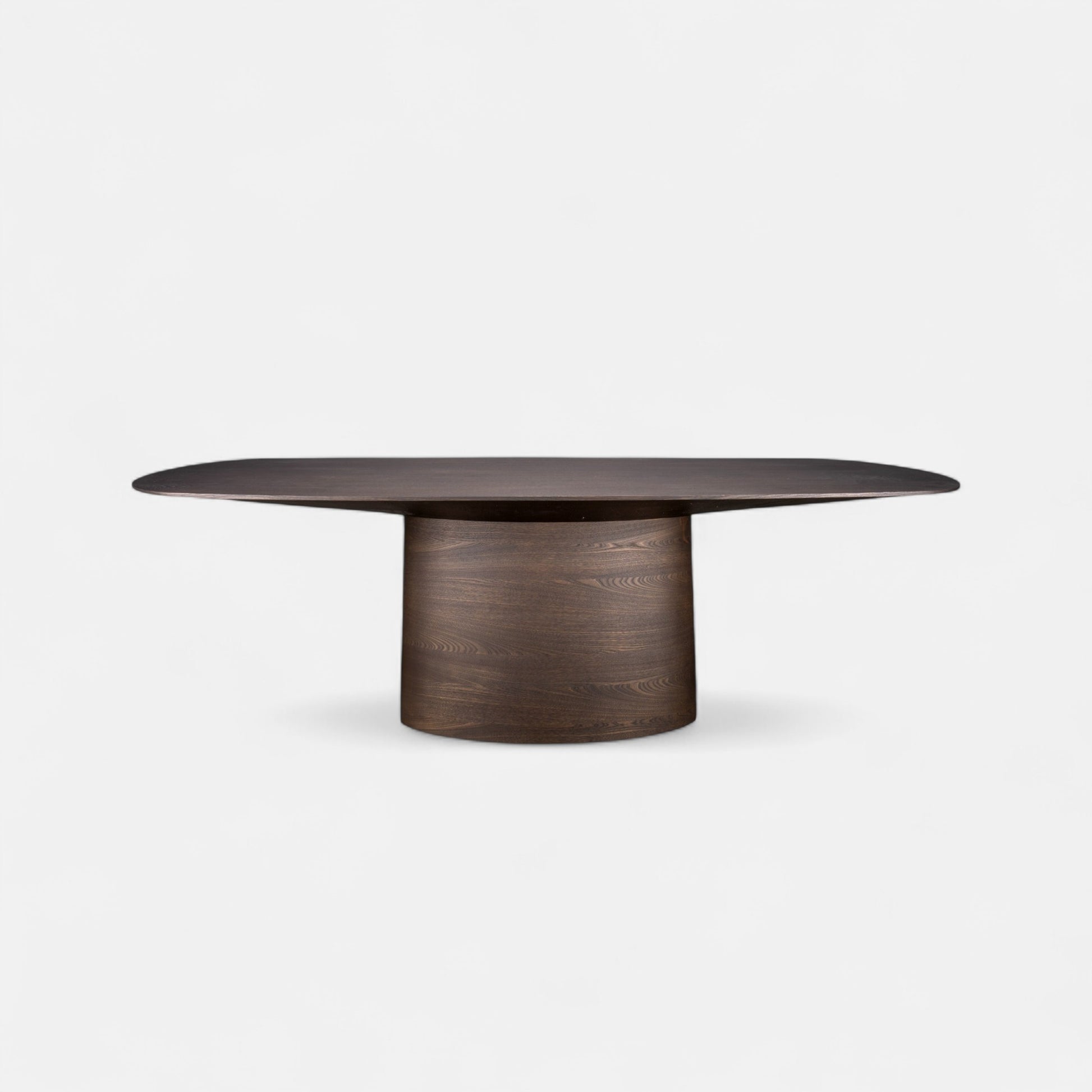This beautiful table features a smooth, polished surface with a natural, wood-grain finish that highlights the unique patterns and rich tones of elm wood. The veneer provides a refined appearance, combining the beauty of real wood with the durability of veneer, making it an elegant and practical choice for your dining area.