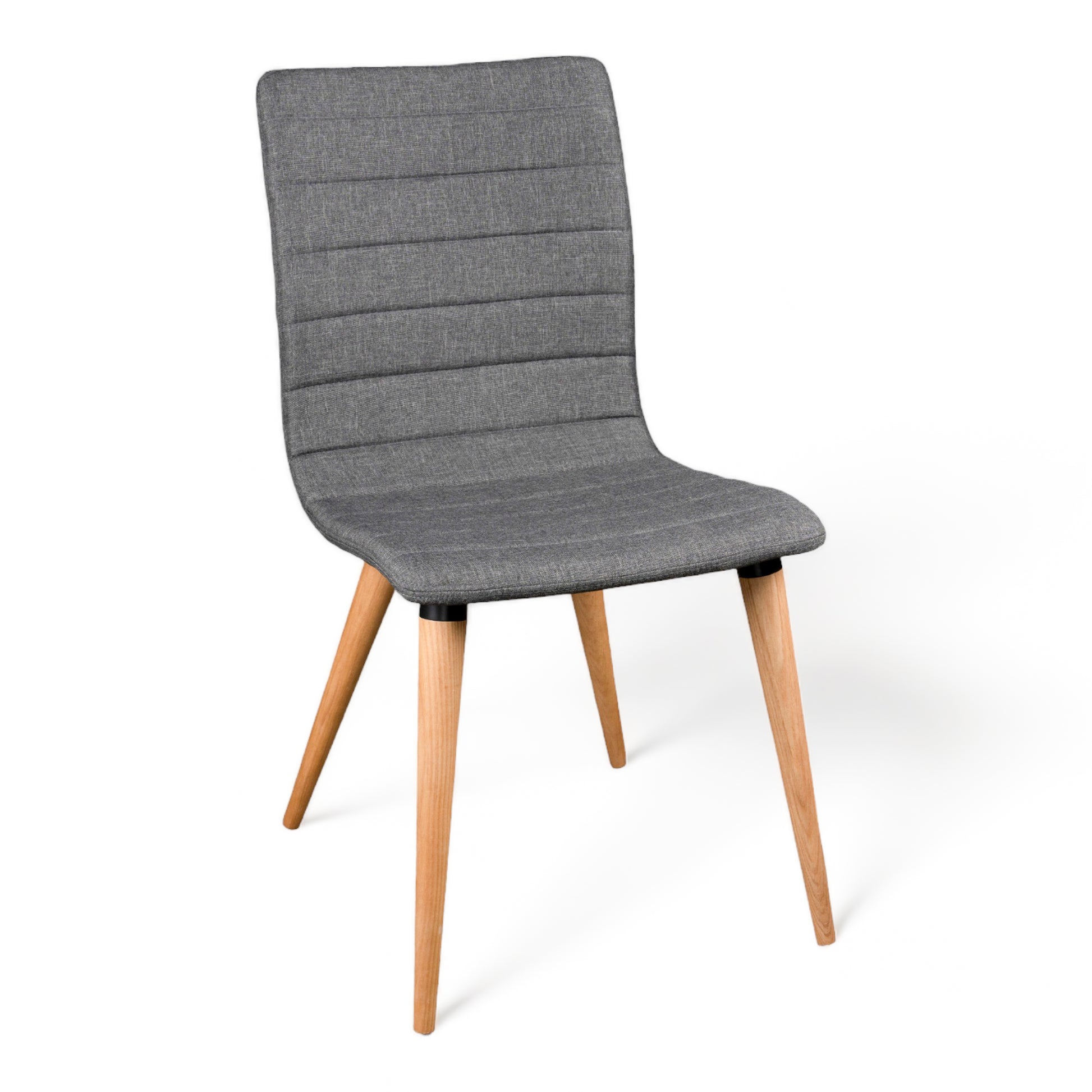 Fabric cover, powder coated metal frame in black, ash solid wood legs in natural colour. Chair comes in grey, black, and green. Stylish and comfortable.