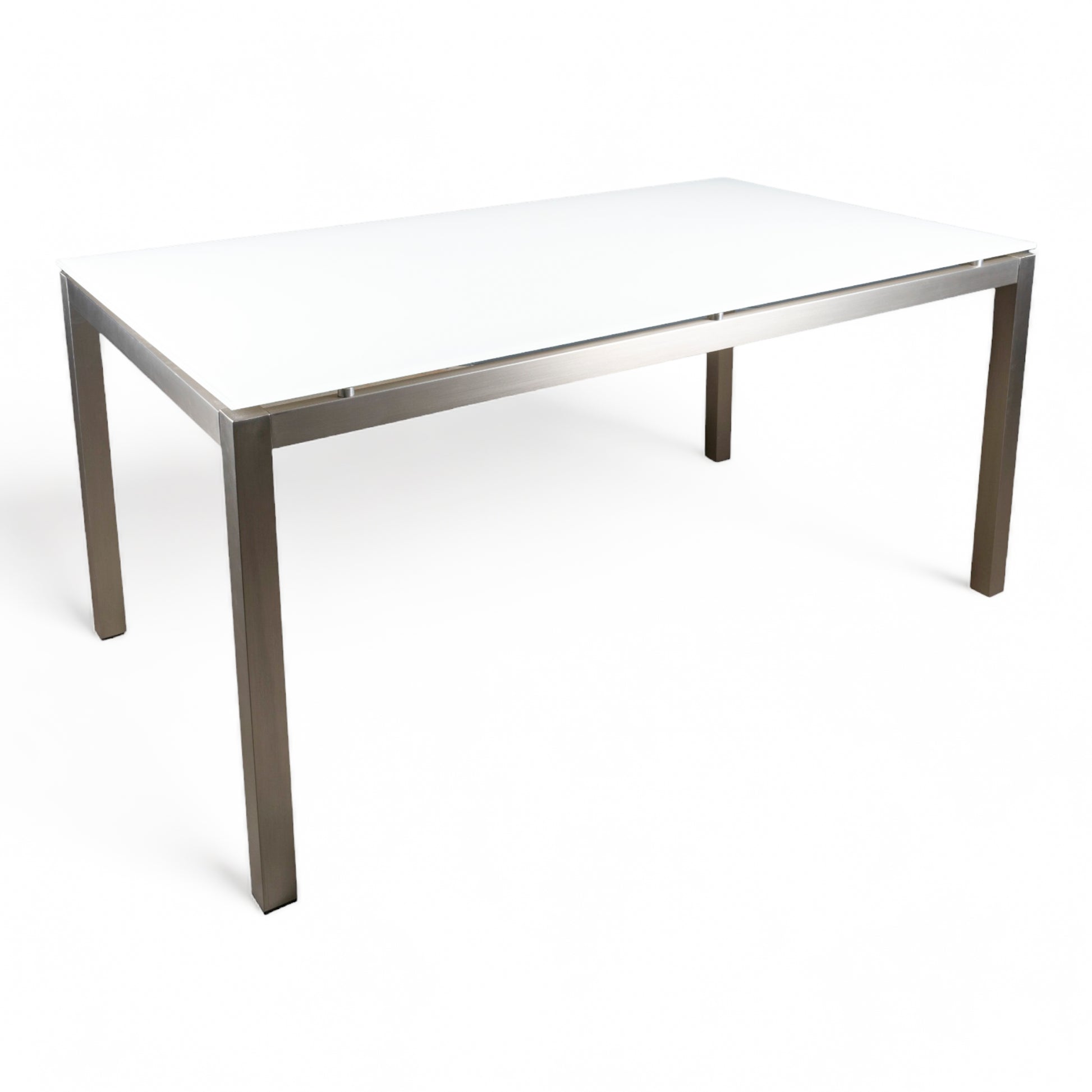 10mm Tempered super white glass top, brushed stainless steel frame and legs. Available in 2 different sizes.