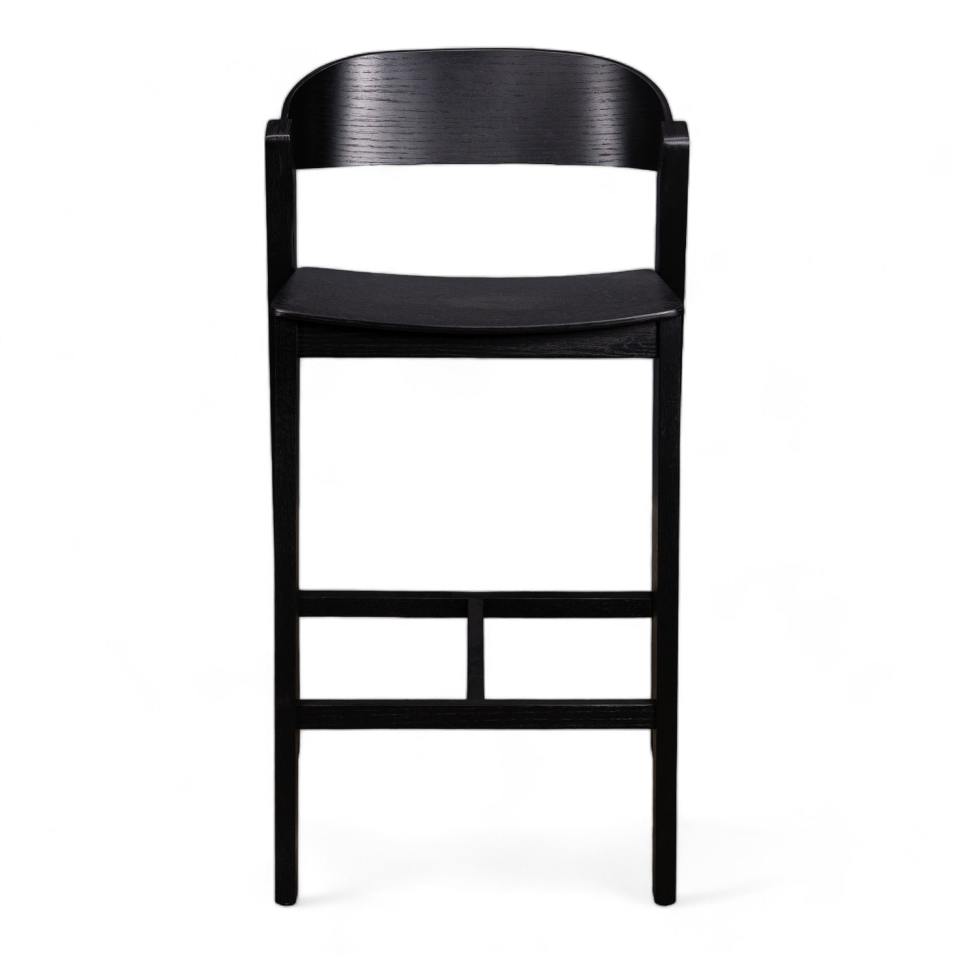 Modern with a twist of classical style accentuated and softened by gentle curves. Elegant and contemporary. Black oak plywood, solid oak legs. Also available with PU seat in black or taupe.