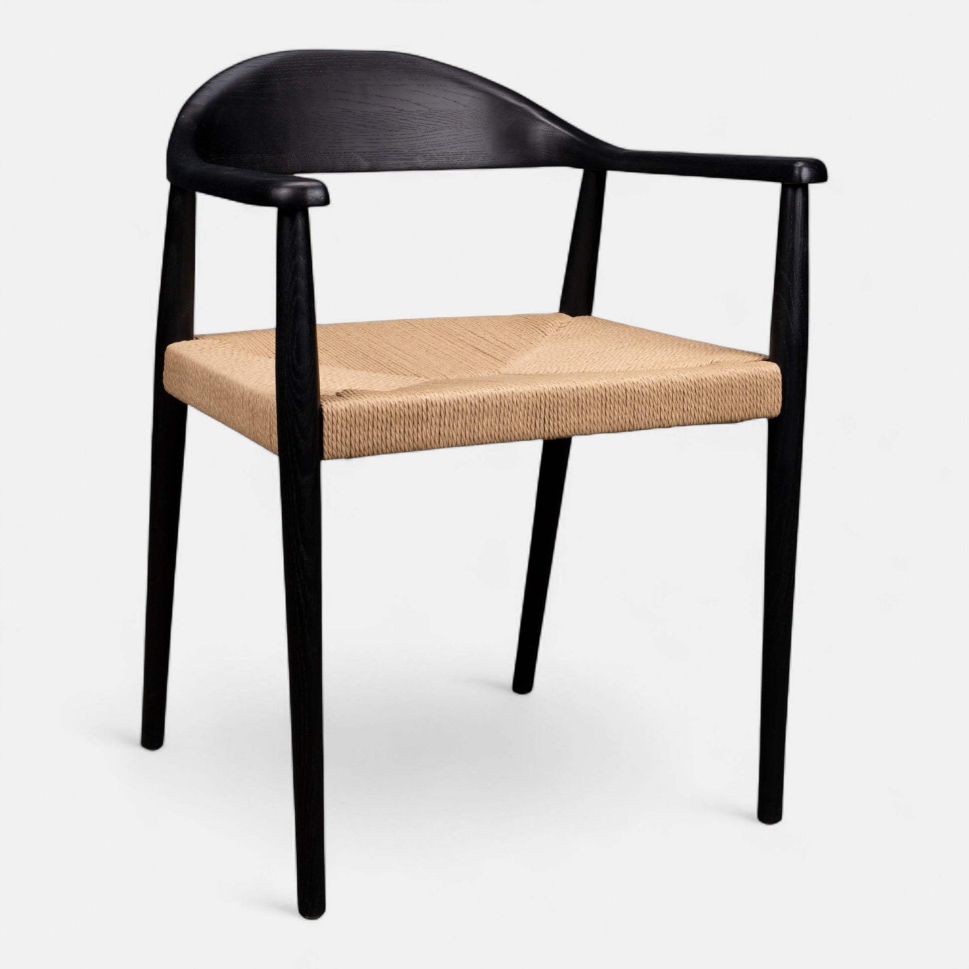 Beautiful woven seat on a solid wood frame, stained black.