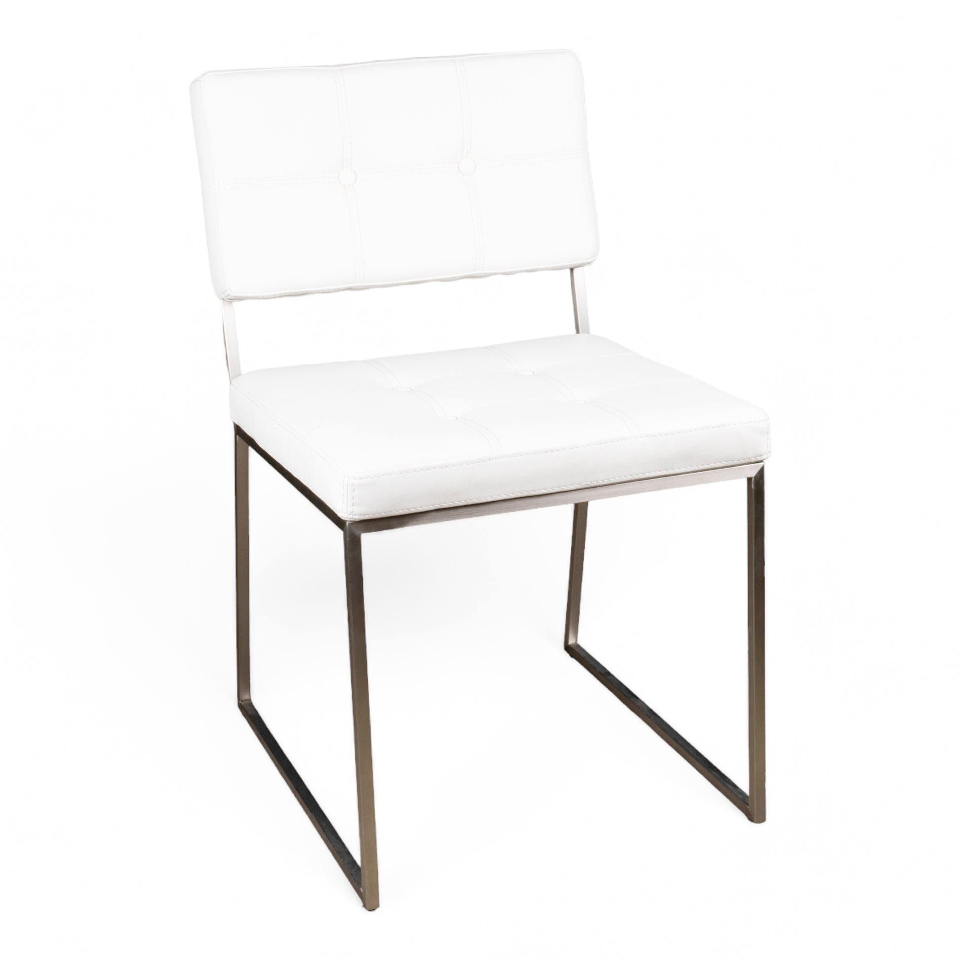 PU cover brushed stainless steel legs. Chairs come in Black and White. Simply stylish.