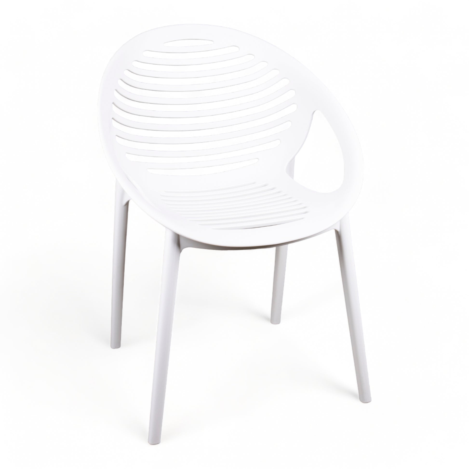 The Tig Chair is available in black and white. Durable and sturdy with a simple design. Stackable and has a UV additive to prevent sun damage.