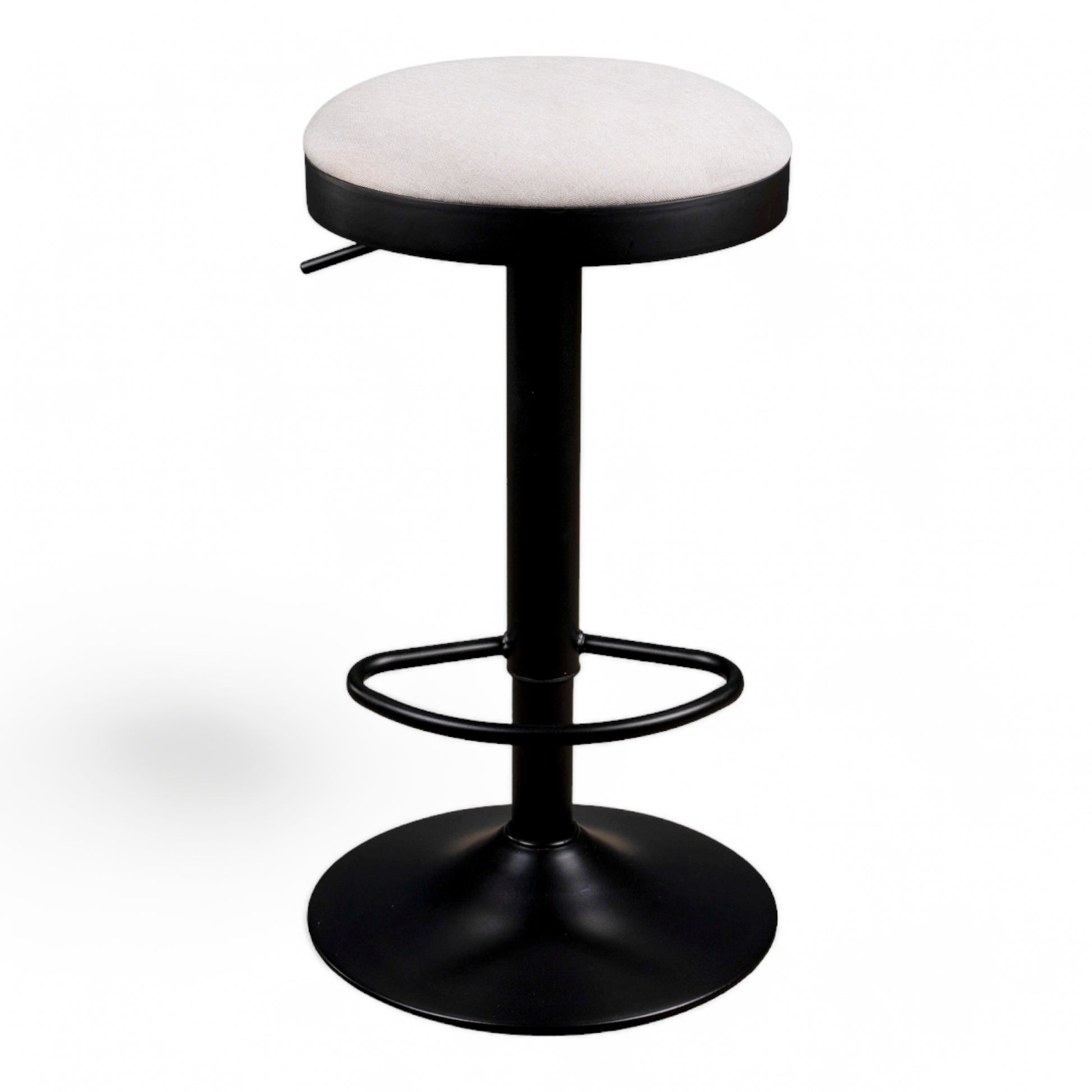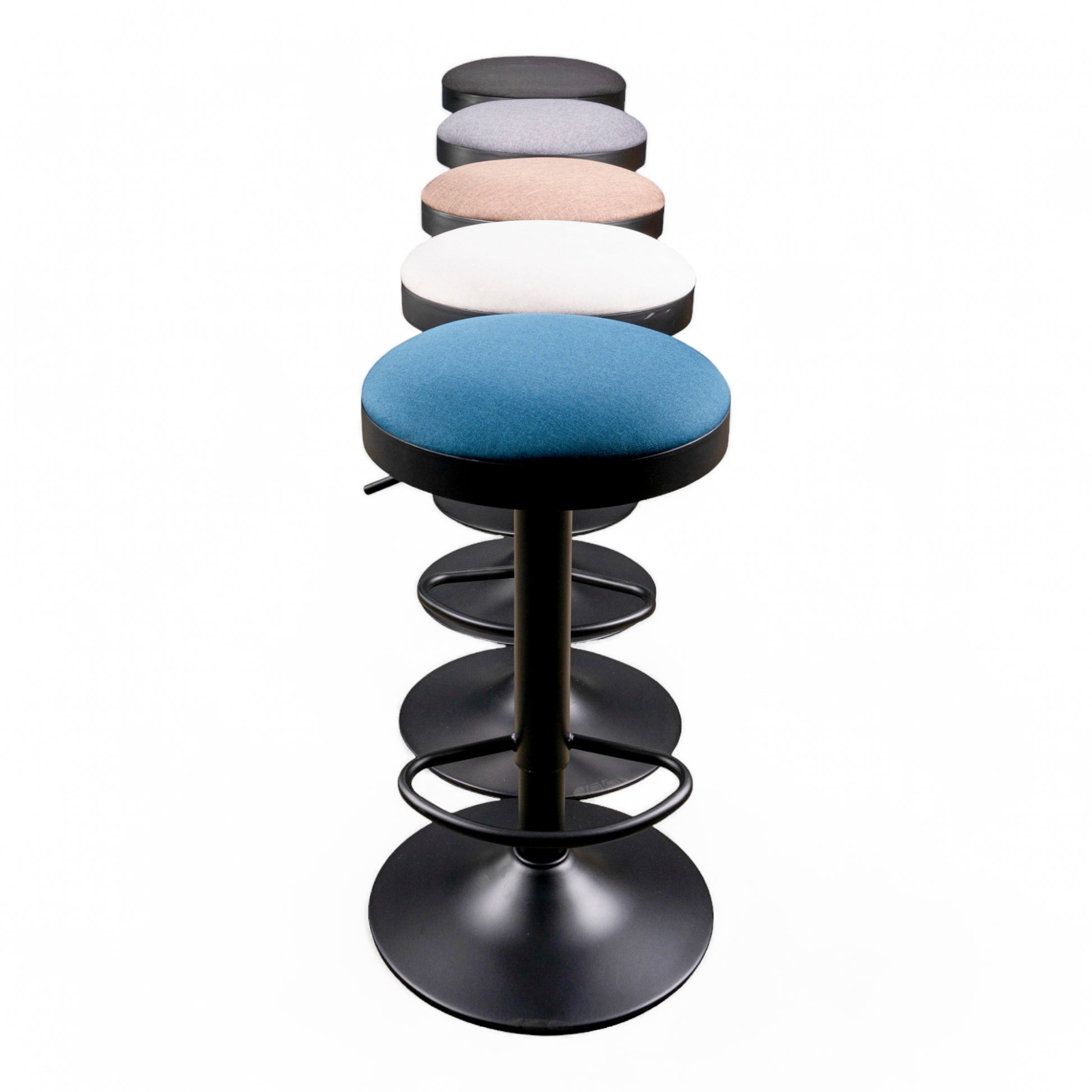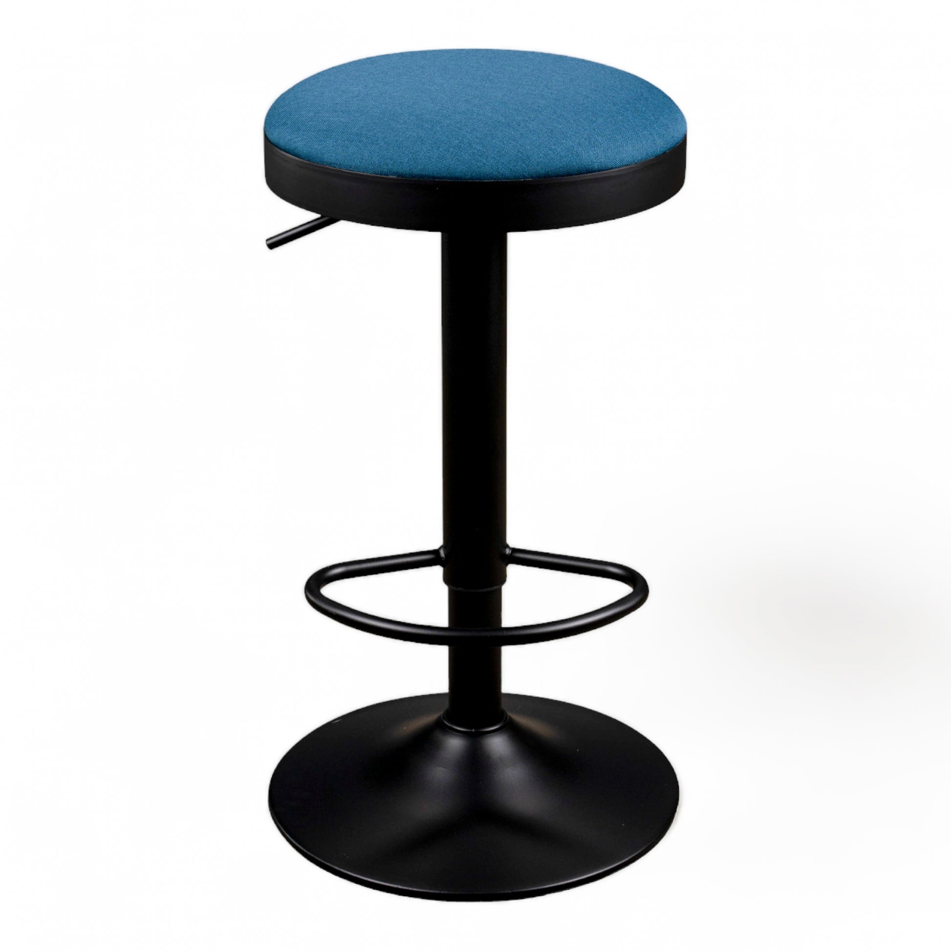 Still one of our bestsellers. This simple, contemporary barstool is available in five colourways. Black powder coated frame with adjustable gas leaver on a black base with an upholstered fabric seat Colours: Black, Peacock, Grey, Cream and Latte.
