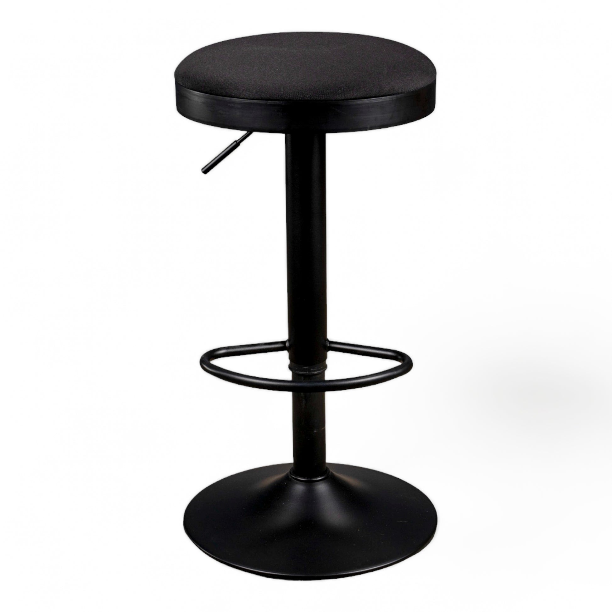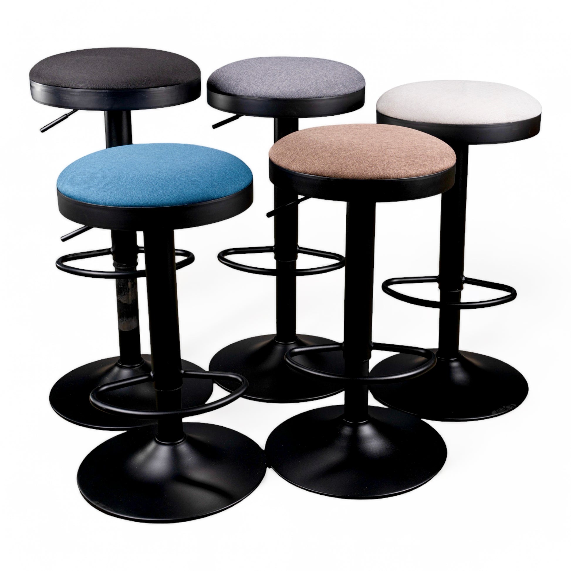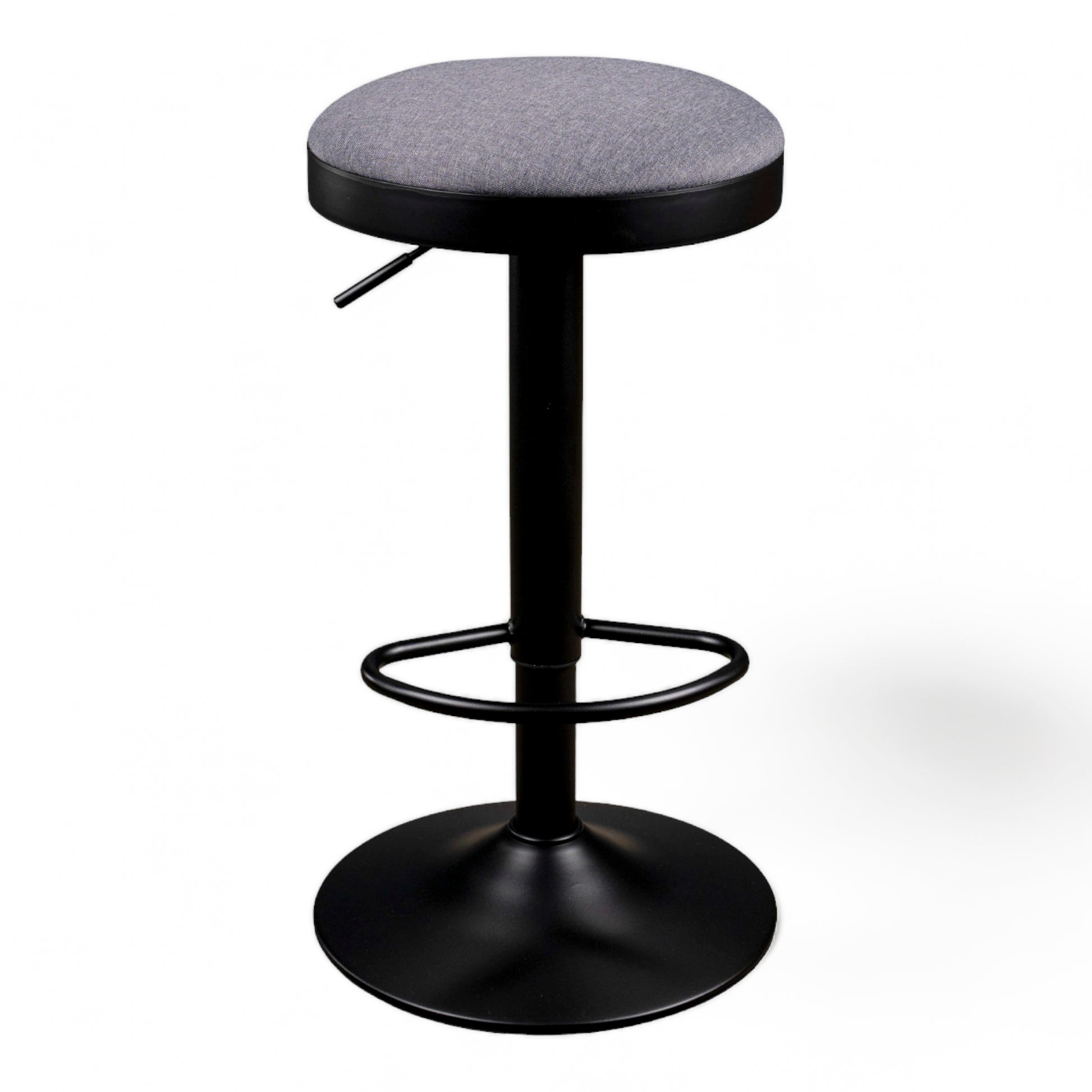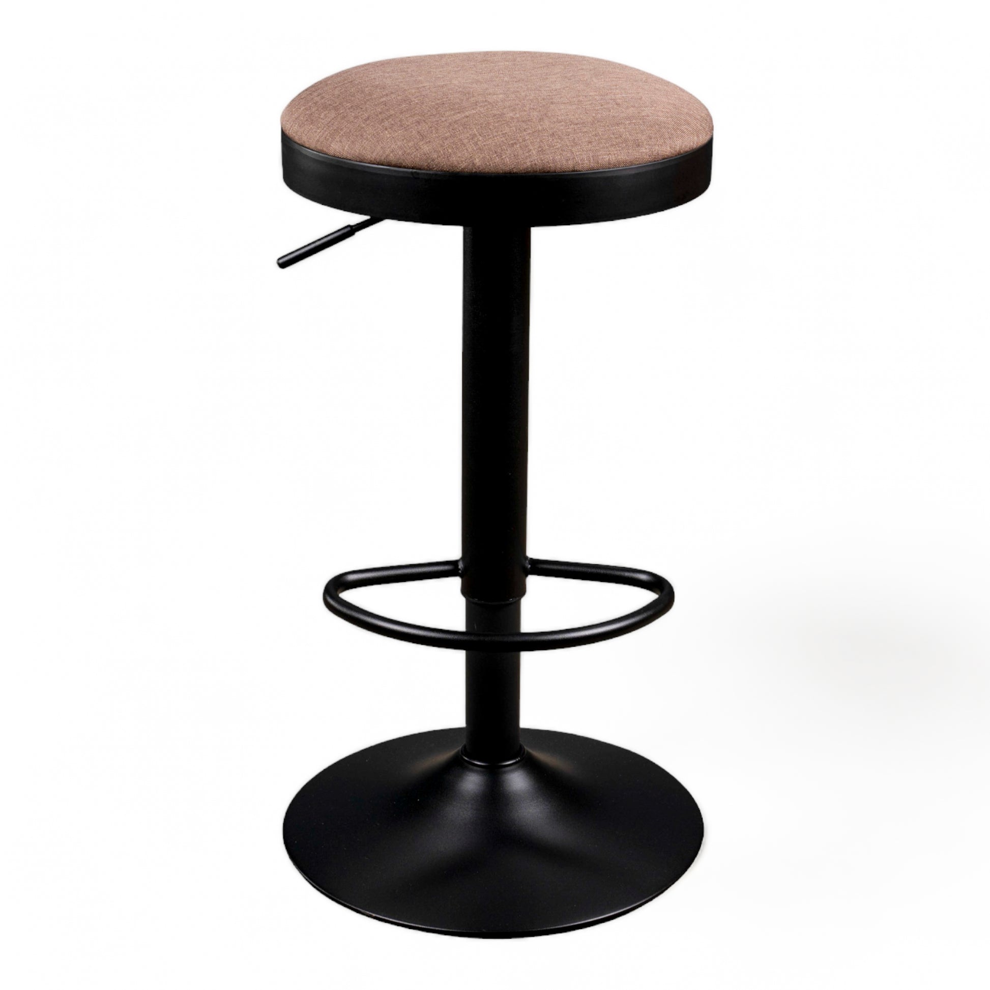 Still one of our bestsellers. This simple, contemporary barstool is available in five colourways. Black powder coated frame with adjustable gas leaver on a black base with an upholstered fabric seat Colours: Black, Peacock, Grey, Cream and Latte.